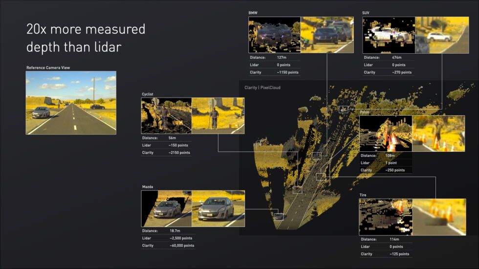 In comparison with lidar sensors, which return less than a tenth of the points per frame, that system provides a clear advantage.